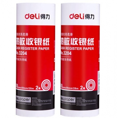 得力(deli)80mm*58mm热敏收银纸/收银机打印纸/超市小票打印纸 28米/卷 50卷/箱 3204