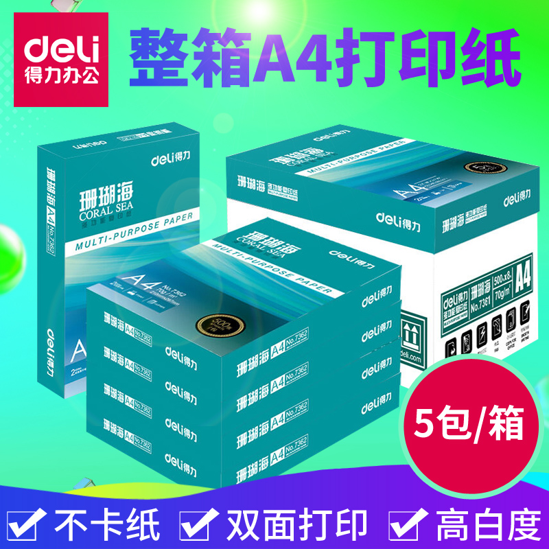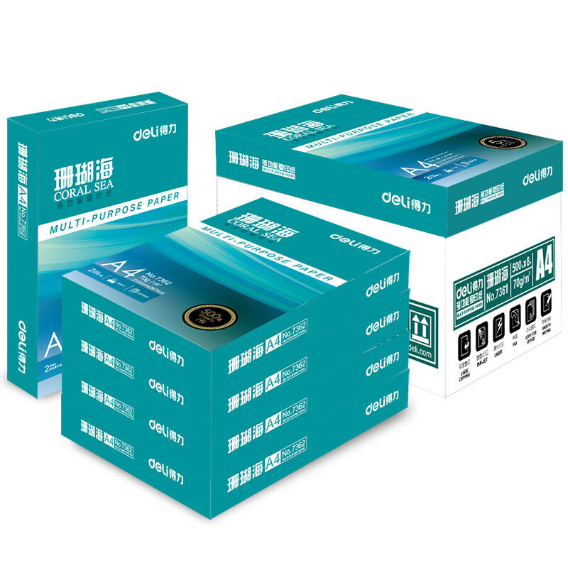 • 商品名称:得力(deli) 7361 A4 珊瑚海复印纸 70g 500张/包 5包/箱