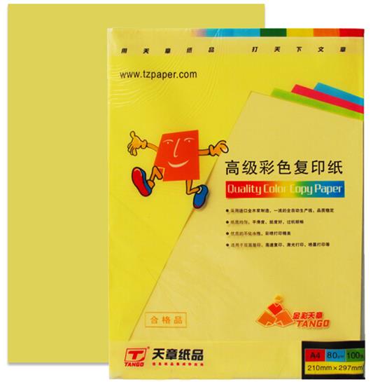 • 商品名称:天章 (TANGO) 金彩天章A4 浅黄色彩色复印纸 80g 100张/包 单包装